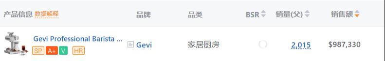 SellerSprite數(shù)據(jù)顯示,過去30天內(nèi),Gevi旗下多款咖啡機(jī)銷量均超過2000臺,其中一款專業(yè)級咖啡機(jī)更是以月銷2015臺的佳績脫穎而出,直接促成了98.7萬美金的銷售額。