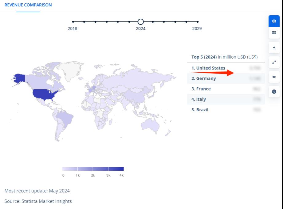 美國是全球咖啡機(jī)市場收入最高的國家 圖源: Statista?