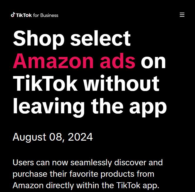 亞馬遜實(shí)現(xiàn)TikTok應(yīng)用內(nèi)購物