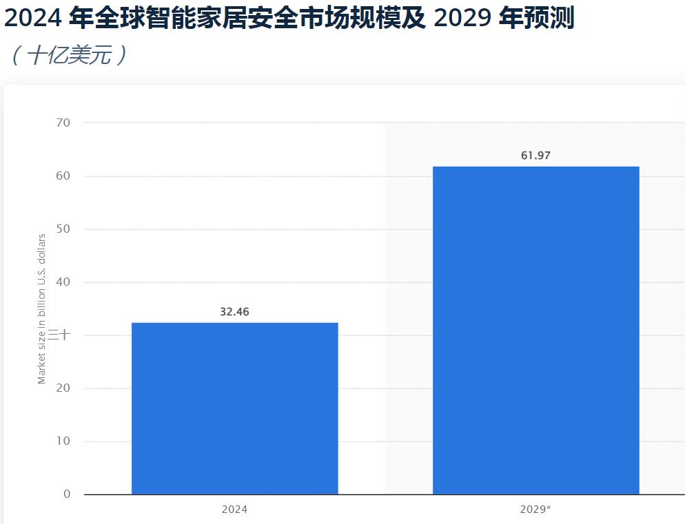 當(dāng)然了,站在風(fēng)口上才能飛得更高,螢石網(wǎng)絡(luò)在智能安防用品市場(chǎng)上的佳績(jī)離不開(kāi)巨大的市場(chǎng)需求的助攻。來(lái)自Statista的預(yù)測(cè)顯示,2024年,全球智能家居安全市場(chǎng)規(guī)模約為325億美元,這一數(shù)字到2029年或?qū)⒃鲩L(zhǎng)至620億美元。