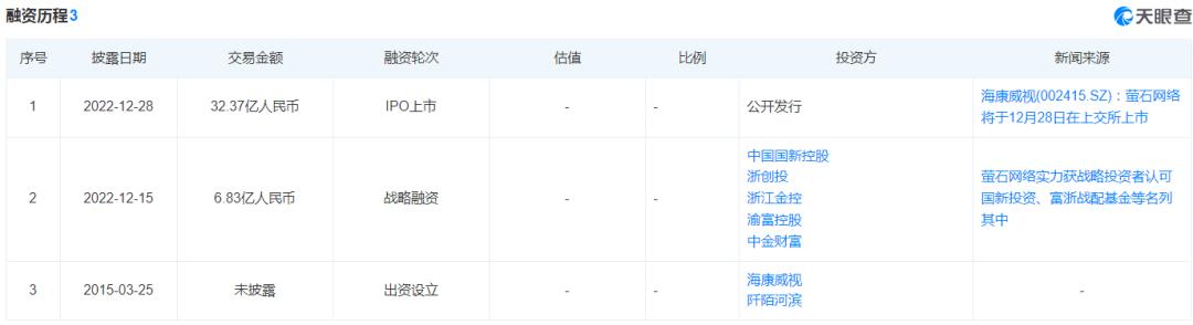 是金子總會(huì)發(fā)光的,螢石網(wǎng)絡(luò)精彩的表現(xiàn)使其得到了資本市場(chǎng)的青睞。2022年底,螢石網(wǎng)絡(luò)正式登陸上海交易所科創(chuàng)板,一舉成為科創(chuàng)板“智能家居第一股”。截至上市,螢石網(wǎng)絡(luò)已經(jīng)拿下了多次融資,IPO上市融資金額甚至高達(dá)32億人民幣,此前的戰(zhàn)略融資也拿到了6.83億人民幣。