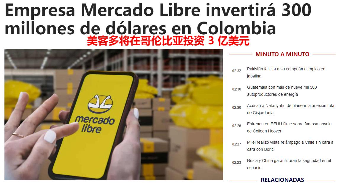 美客多將在哥倫比亞投資超3億美元 圖源:prensa-latina.cu
