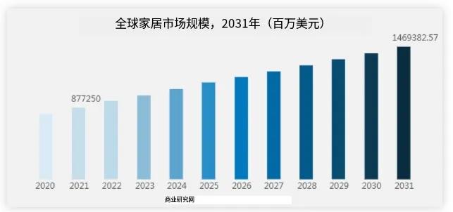 根據(jù)Business Research Insights發(fā)布的《家居用品市場報告概述》,2021年全球家居市場規(guī)模就已達到8772.5億美元,預(yù)計2021年至2023年期間年復(fù)合增長率為5.3%,到2031年全球家居市場規(guī)模將突破萬億美元大關(guān)。