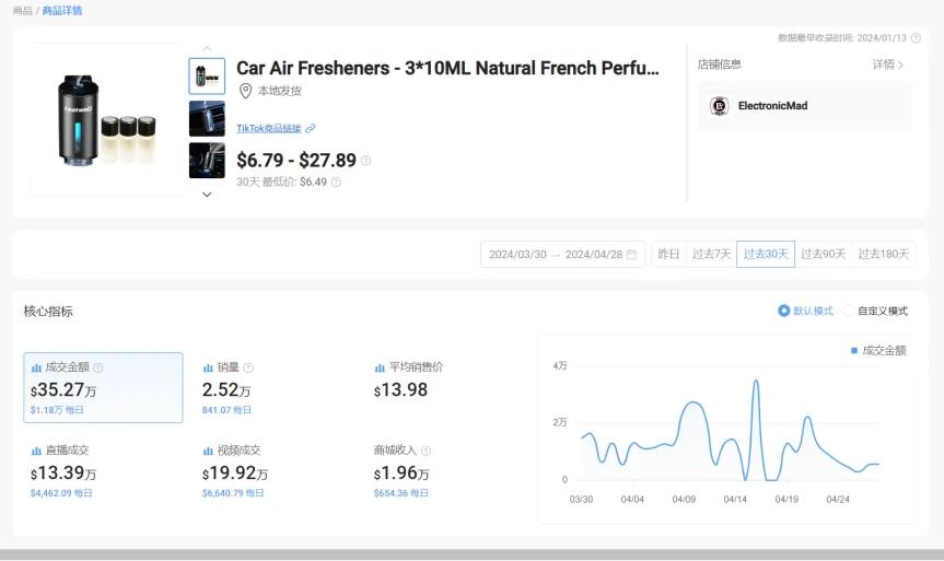 例如在汽車香氛領域,各種形態各異、款式多樣的空氣清新產品就受到歐美消費者的熱烈追捧。比如前段時間爆火的智能車載空氣清新器,這款產品由于具備智能啟動和關閉、智能調香功能而吸引了不少消費者的青睞。僅在4月,這款車載空氣清新器的銷量就達到2.52萬單,實現銷售額超35萬美金。