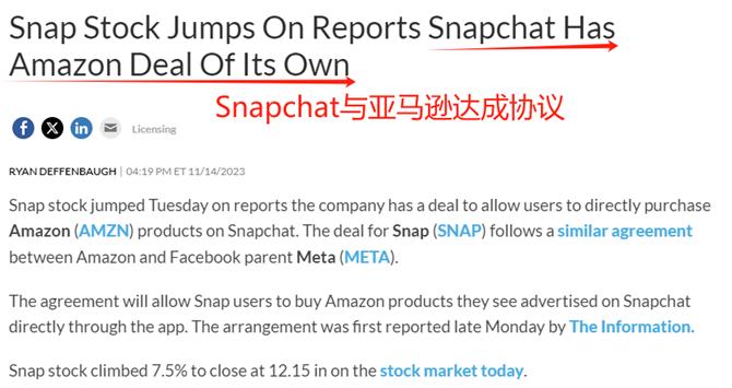 亞馬遜與Snap達(dá)成協(xié)議 圖源:IBD