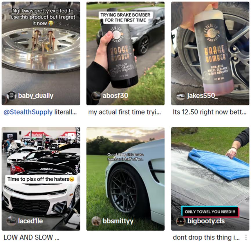 就比方說汽車護理品牌Stealth Supply,該品牌主營汽車清洗液產品,以汽車愛好者為主要目標客群。為了獲得消費者的信任,該品牌深耕產品質量,成功打造出了幾款爆品。如今在TikTok Shop上,Stealth Supply旗下產品熱度驚人,銷量也隨之高漲。