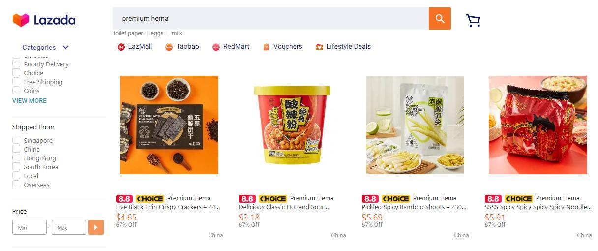 盒馬自有品牌商品在Lazada上架 圖源:Lazada
