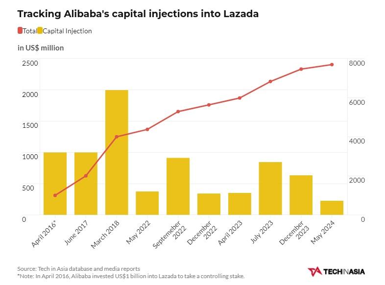 2022年,阿里巴巴分三次向Lazada注資共計(jì)16億美元;2023年,阿里巴巴向Lazada注資超過(guò)18億美元;2024年5月,阿里巴巴再度向Lazada注資2.3億美元。自2016年起截至目前,阿里向Lazada累計(jì)注資已超77億美元。