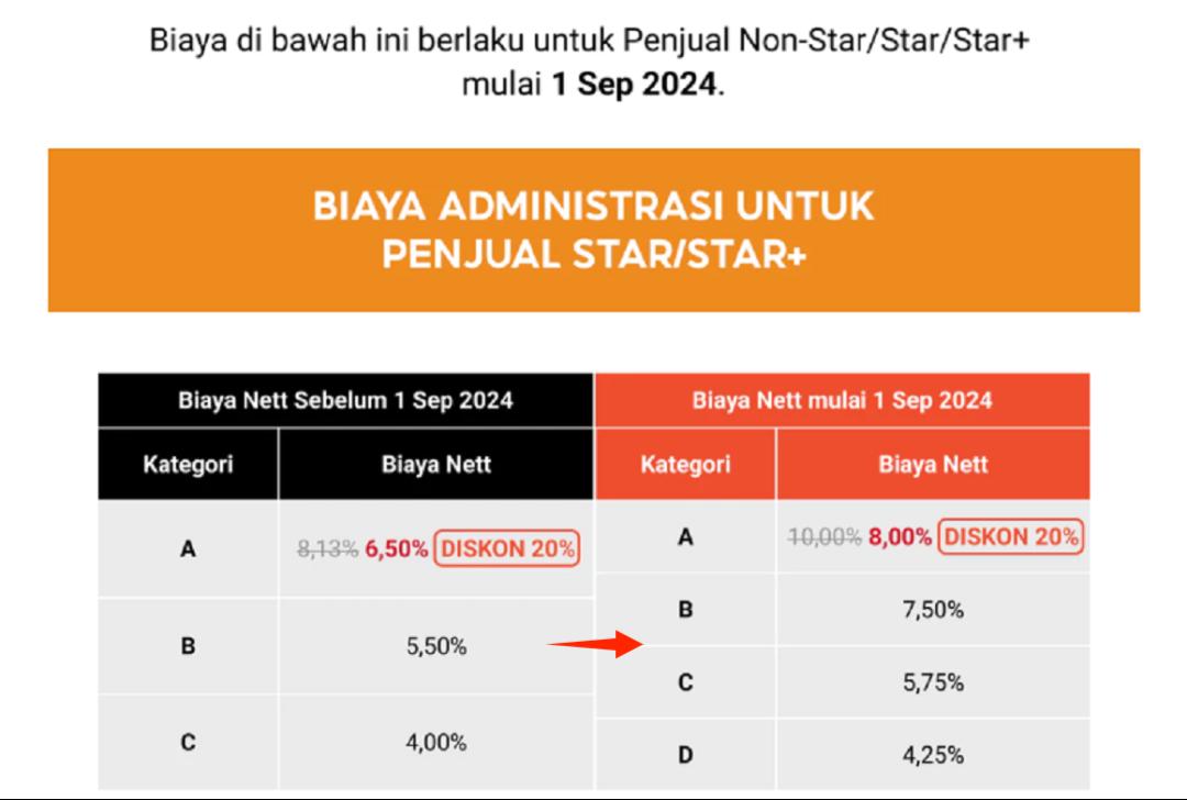 Shopee印尼星級賣家最新管理費政策 圖源:Shopee