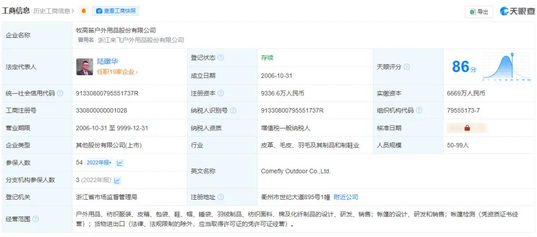 牧高笛發展信息 圖源:天眼查