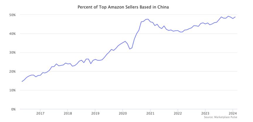 中國賣家所占比例持續提升 圖源:Marketplace Pulse
