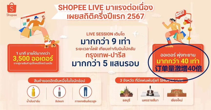 Shopee Live泰國市場訂單量激增 圖源:thansettakij
