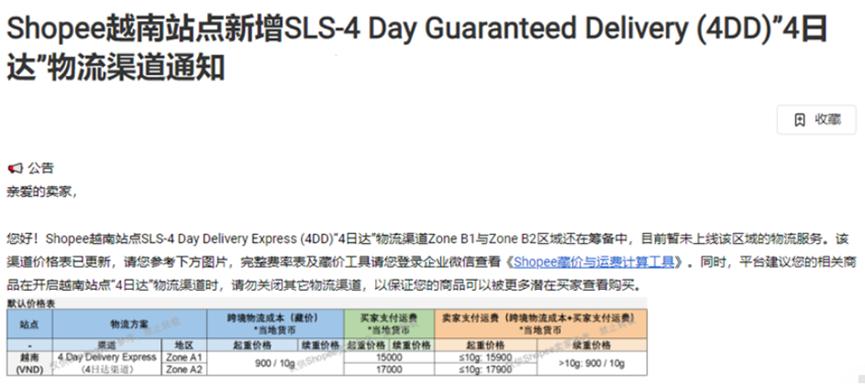 Shopee越南新增4日達物流服務 圖源:Shopee賣家學習中心