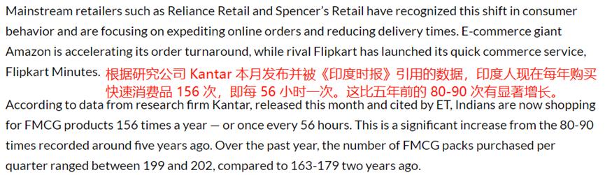 客觀來看,印度快消品市場的增長,在很大程度上要歸因于電商市場的發(fā)展和快商務(wù)的推動。