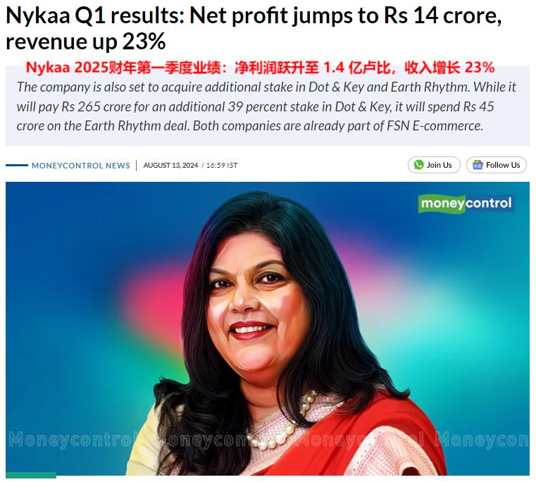 Nykaa凈利潤同比增長23% 圖源:Money Control