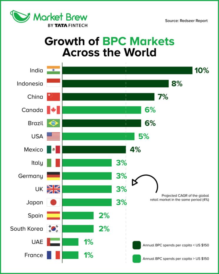 印度美妝市場增長率全球第一 圖源:Market Brew