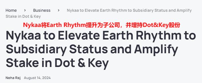 不僅如此,快速增長的業績也為Nykaa帶來更多加速擴張的信心與底氣。今年下半年,Nykaa將以71億盧比,完成對印度美妝品牌Dot & Key 和Earth Rhythm的股份收購。預計收購完成后,Nykaa將以90%的持股比例成為Dot & Key的最大股東,而Earth Rhythm將成為Nykaa的控股子公司。