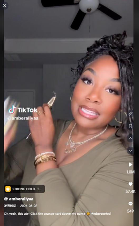 數(shù)據(jù)顯示,@amberaliyaa在8月初發(fā)布的帶貨視頻目前在TikTok已獲得上百萬的播放量。值得一提的是,由于該達(dá)人本身就是發(fā)質(zhì)較硬的卷發(fā),因此鬢角控制凝膠的固定效果和邊緣加厚效果也更加凸顯,因此視頻一經(jīng)發(fā)出,就有許多用戶紛紛表示已被“種草”。