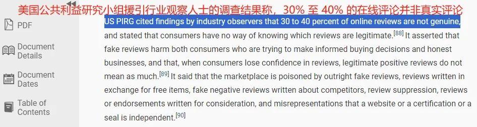 而至于本規定出現的原因,也是非常好理解的。隨著越來越多消費者會選擇線上購物,大家也愈發依賴評論來獲取產品信息,但據美國公共利益研究小組援引行業觀察人士的調查結果稱,平均約有30%至40%的在線購物評論是虛假的,并表示消費者無法知道哪些評論是真實的。