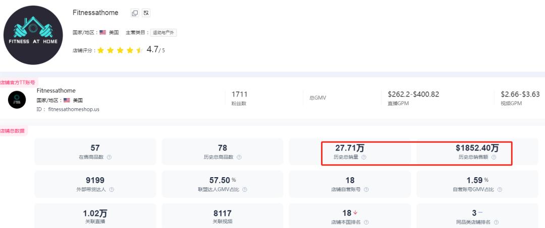 專注于居家健身器材的品牌Fitnessathome便是嘗到甜頭的一員。據(jù)了解,在TikTok開店僅10個(gè)月的時(shí)間,該品牌便實(shí)現(xiàn)了銷售額超過(guò)1852億美元(約合1.3億元人民幣)的驚人成績(jī),成為行業(yè)內(nèi)的一匹新晉黑馬。