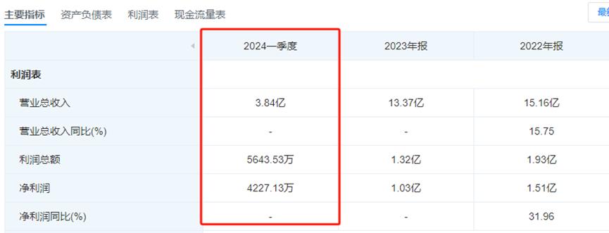 依依股份2024年第一季度業績數據 圖源:天眼查