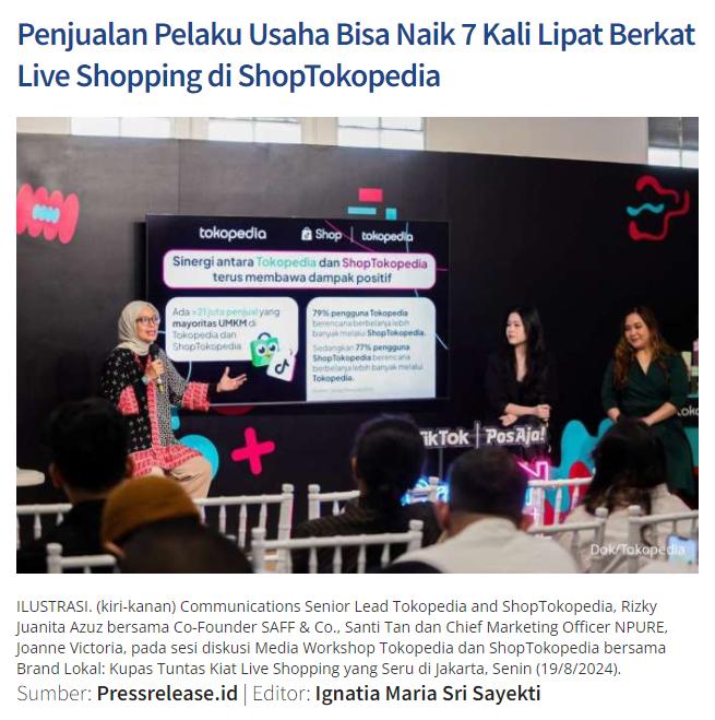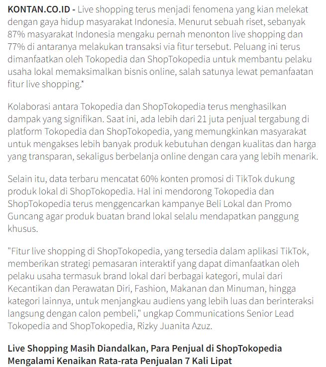 文章來源于互聯網:Shop Tokopedia:直播商家平均銷售額增近7倍