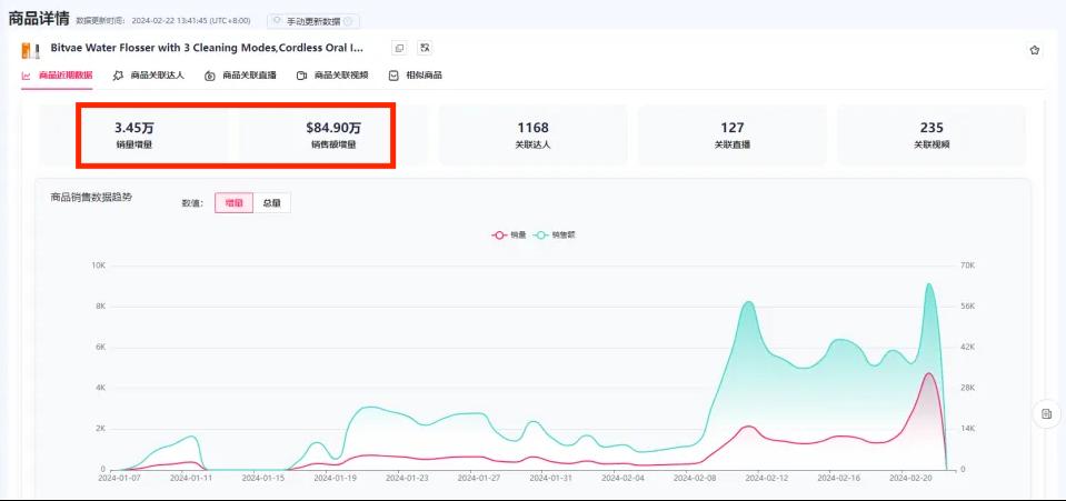 最近,一款沖牙器在TikTok美區引發購物熱潮,近7天內銷量猛增,達到1.6萬件,預估銷售額近20萬美金。