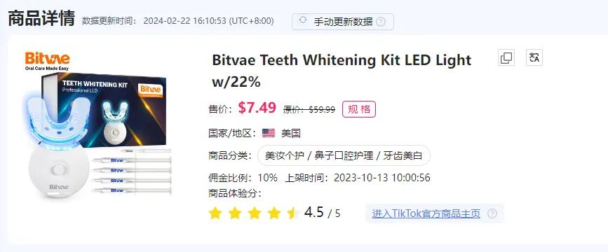 例如在前述的Bitvae Oral Care小店里,和沖牙器一同爆火的還有牙齒美白儀。根據FastMoss數據,在Bitvae沖牙器熱銷之時,其另一產品牙齒美白儀同樣以5.8萬的總銷量成績(截至今年2月21日)展現了不俗的實力,累計總銷售額達114.85萬美元。