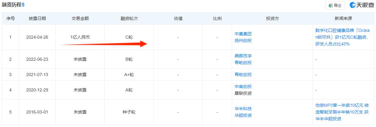 Oclean完成1億人民幣的C輪融資 圖源:天眼查?