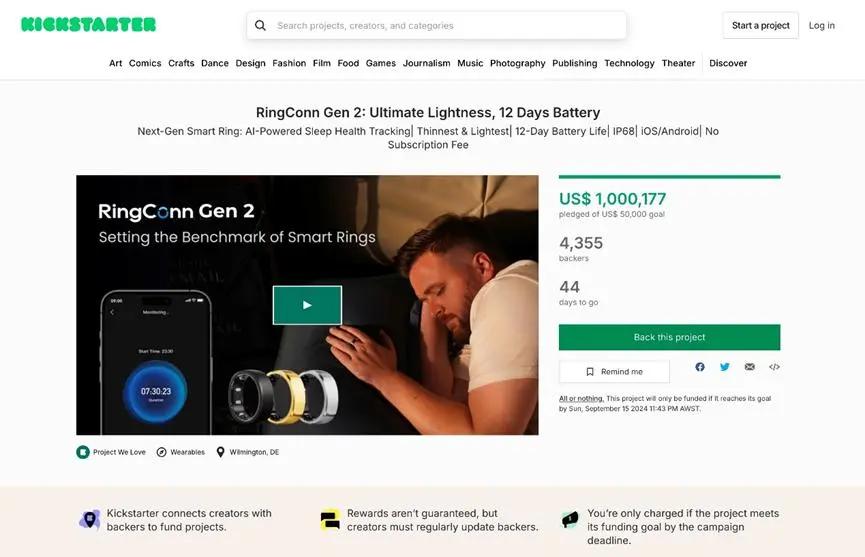 正是依托于王國興教授團隊扎實的研究成果,RingConn的產品總能在起步時便斬獲佳績。2022年11月,RingConn首款新品上線眾籌平臺,短短50天就籌得了120萬美金;最近,RingConn再次刷新記錄,其新品RingConn Gen 2上線平臺僅8小時,便籌得100萬美元的資金。可以說,在智能戒指這條賽道上,作為新興勢力,RingConn已經刷足了存在感。