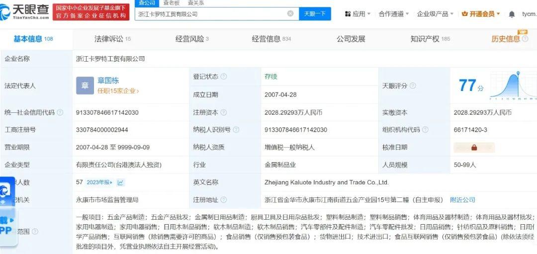 卡羅特部分信息 圖源:天眼查
