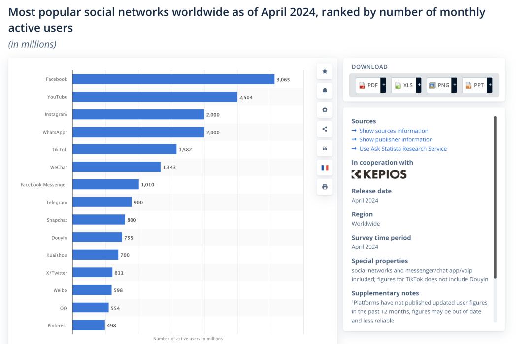 Statista數據顯示,截至今年4月,TikTok的全球下載量已超過49.2億次,月度活躍用戶數超過15.82億,預計2024年全年電商業務GMV將達500億美元。Statista還預測,到2027年底,TikTok月活用戶有望達到22.5億。