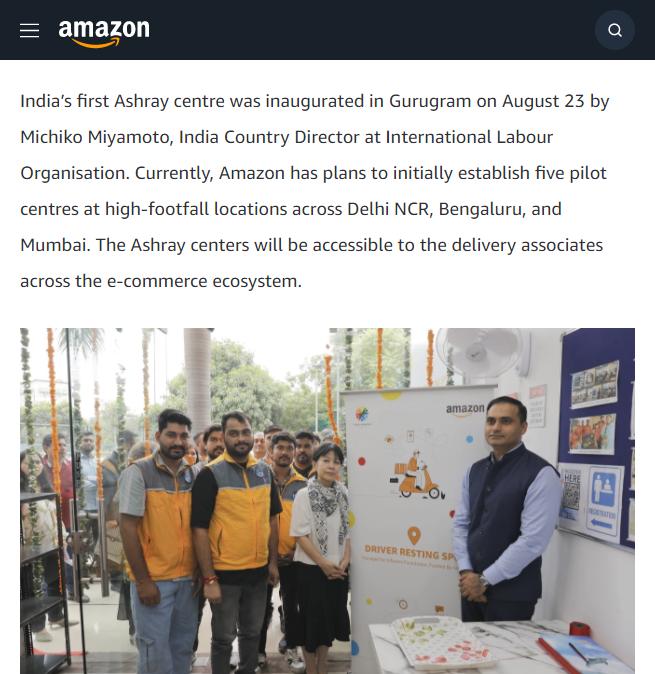 文章來源于互聯網:亞馬遜印度推出“Ashray”項目 為送貨員提供休息點