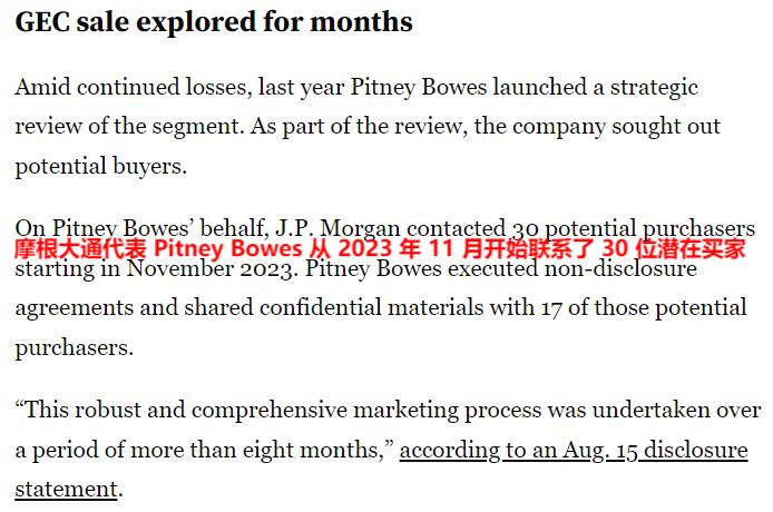 今年5月,Pitney Bowes又針對(duì)公司內(nèi)部結(jié)構(gòu)和資金管理進(jìn)行了重要調(diào)整,提出縮減成本、加速GEC審查、現(xiàn)金優(yōu)化、修復(fù)資產(chǎn)負(fù)債表四大關(guān)鍵戰(zhàn)略;7月初,GEC部門總裁退休,但新任總裁名單卻遲遲未公布;7月底,Pitney Bowes將其部分業(yè)務(wù)出售給物流公司Stord。這種種跡象都預(yù)示著,GEC的運(yùn)營(yíng)即將落下帷幕。