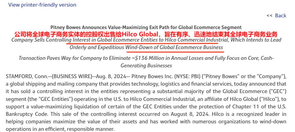 Pitney Bowes 宣布結(jié)束其全球電商業(yè)務(wù) 圖源:investorrelations.pitneybowes?