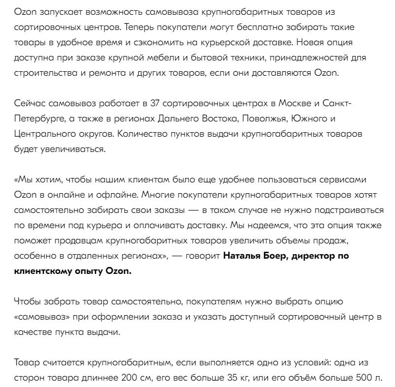 文章來源于互聯網:Ozon向買家推出分揀中心大件商品自提服務