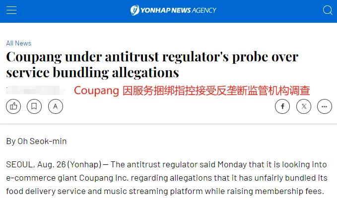 文章來源于互聯網:負面風波不斷,Coupang再遭反壟斷監管機構指控