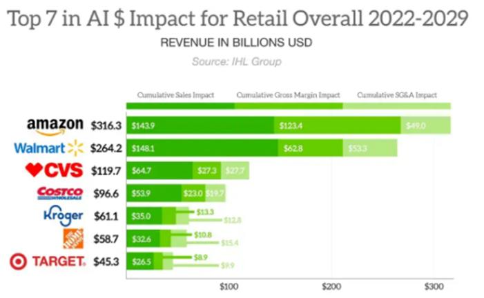 AI將給多個(gè)電商巨頭帶來(lái)收益 圖源:IHL Group