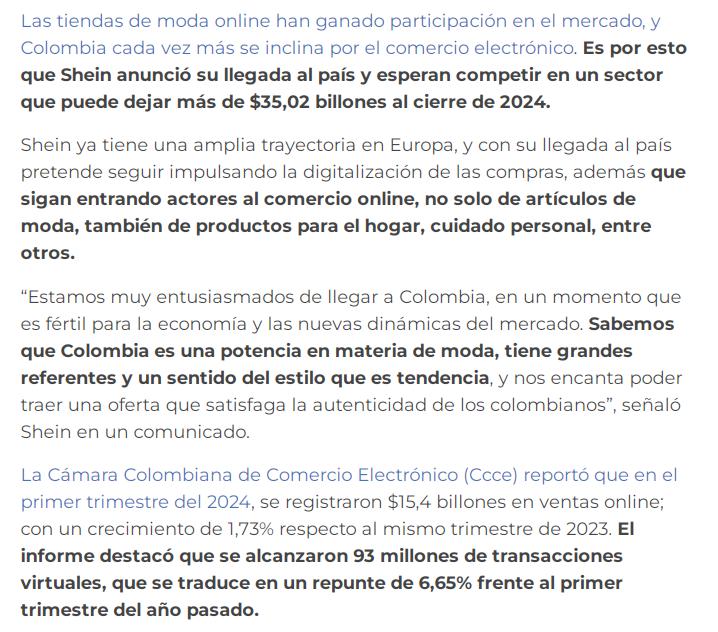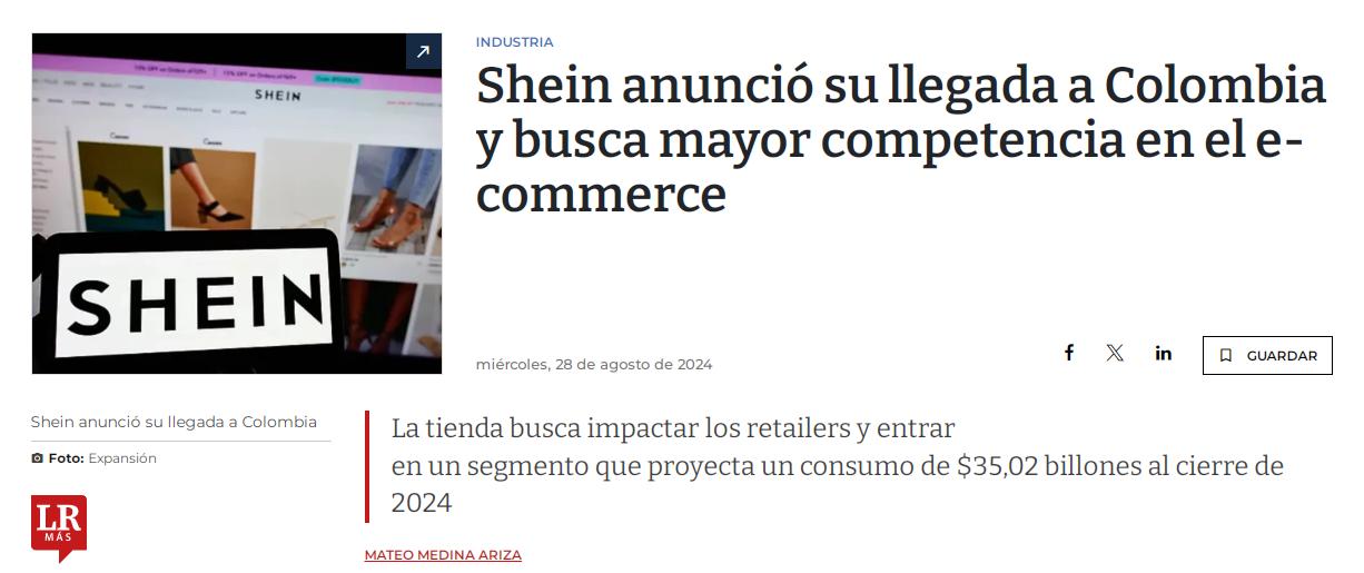 文章來源于互聯網:SHEIN正式進入哥倫比亞市場