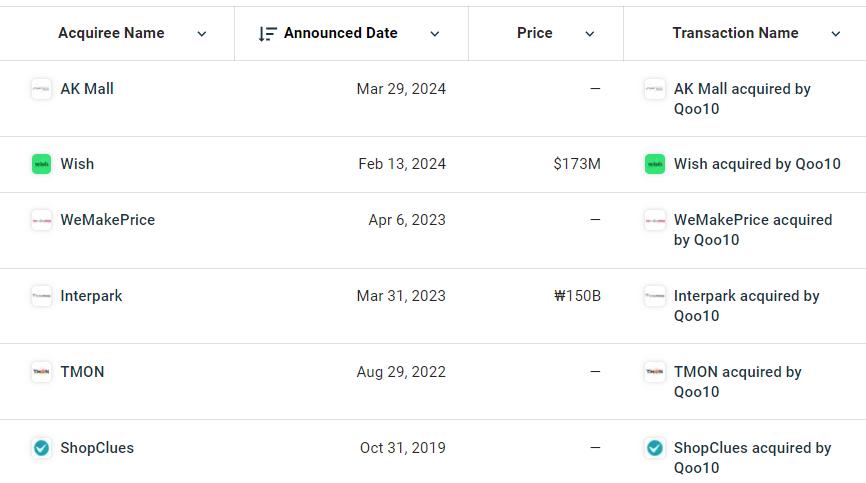 Qoo10陸續收購電商平臺 圖源:Crunchbase?