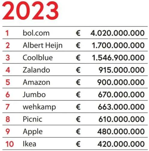而在荷蘭電商市場,Bol是十分受歡迎的,可以說是處于遙遙領先的狀態。在2023年荷蘭電商TOP100榜單中,Bol.com排名第一,據其母公司Ahold Delhaize公布的去年全年財報來看,2023年,Bol.com的營收與GMV也實現了雙雙上漲。