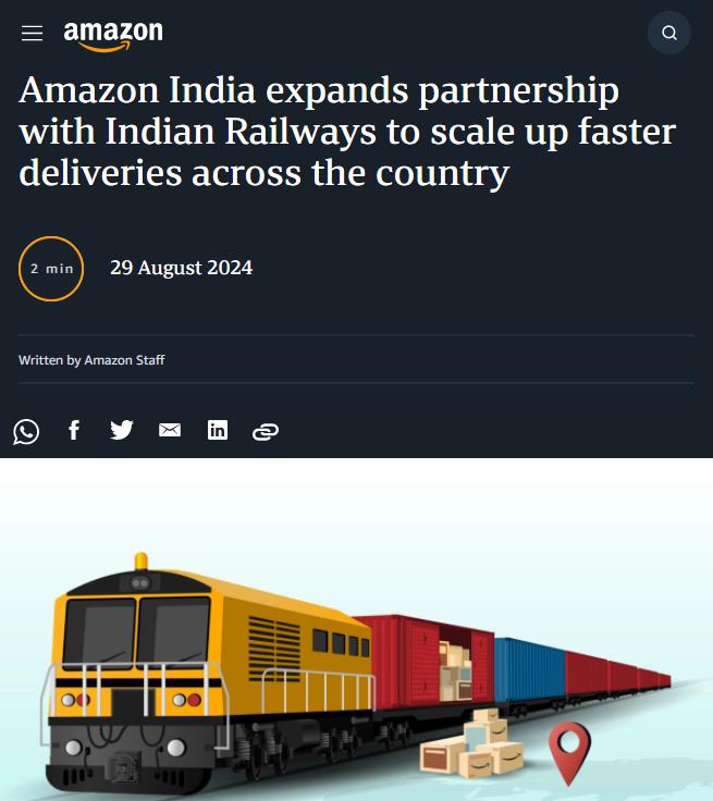 文章來源于互聯(lián)網(wǎng):亞馬遜印度擴(kuò)大與印度鐵路合作 提升包裹配送速度