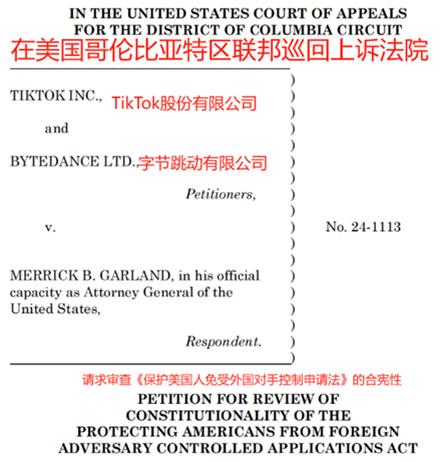 今年4月,美國參議院正式通過法案,要求字節跳動剝離TikTok,否則該應用程序將被禁止在美國上架。隨后不久,TikTok及其母公司字節跳動便將美國政府告上法庭,要求在全國范圍內停止這項針對TikTok應用程序的禁令的執行。