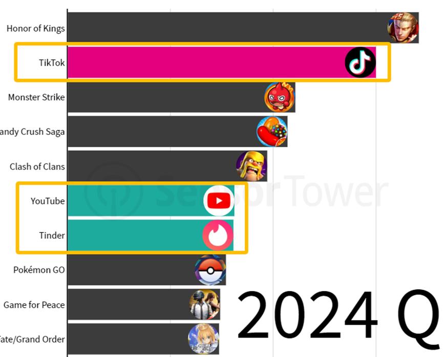 TikTok在非游戲領域占據主導地位 圖源:Sensor Tower
