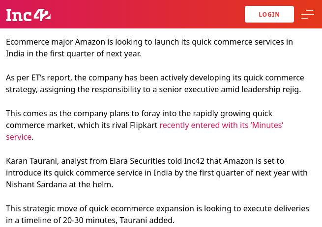 內部人士透露,亞馬遜針對印度快速商務垂直領域的工作已進行了一段時間,并有明確的時間計劃。該業務仍需獲得亞馬遜全球總部的批準,因此尚未在全球范圍內推出。