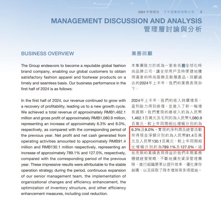 報告期間,子不語集團的收入約為人民幣1,462.1百萬元,較2023年同期收入約人民幣1,375.3百萬元增長約6.3%。收入增長主要是通過亞馬遜平臺及TikTok平臺收入的增長。