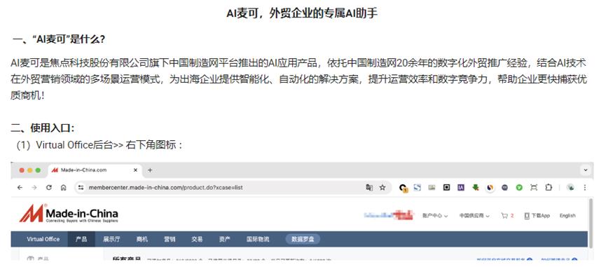 值得一提的是,除了持續深耕中國制造網業務,焦點科技也在積極擁抱當今AI+電商的浪潮,于去年正式推出了一個名為“麥可”的AI外貿助手。據了解,這個AI助手可以根據賣家的需求來撰寫產品文案、制定營銷方案、進行多語種翻譯、潤色和處理圖片、以及智能回復用戶等。