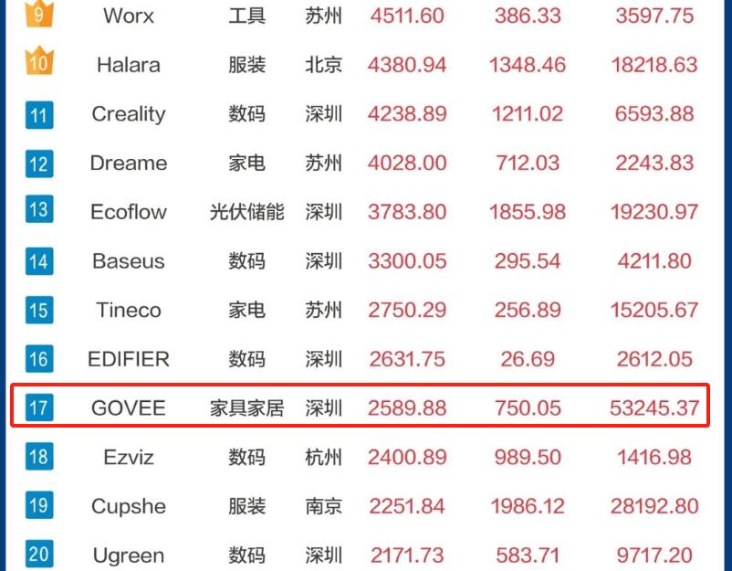 主營(yíng)智能燈具的家居品牌Govee便得到了市場(chǎng)的滋養(yǎng),在《中國(guó)跨境電商品牌影響力榜(2024年上半年)》中可以看到,Govee排名17,相當(dāng)靠前。在亞馬遜平臺(tái)上,Govee的戰(zhàn)績(jī)更加亮眼,是亞馬遜BS榜的常見(jiàn)身影,其一條智能燈帶甚至還創(chuàng)下了單月銷(xiāo)售額超過(guò)1200萬(wàn)美元的業(yè)績(jī)。