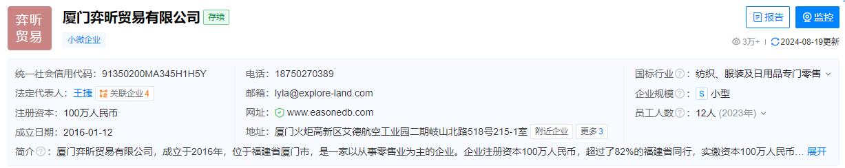 ExploreLand隸屬于廈門弈昕貿(mào)易有限公司,該公司是一家成立于2016年的小微企業(yè),至今,公司全部成員也僅有十幾人。但就是這樣一個(gè)名不見經(jīng)傳的小團(tuán)隊(duì),在短短五年內(nèi),打造出了一個(gè)年銷超4億的出海大賣。