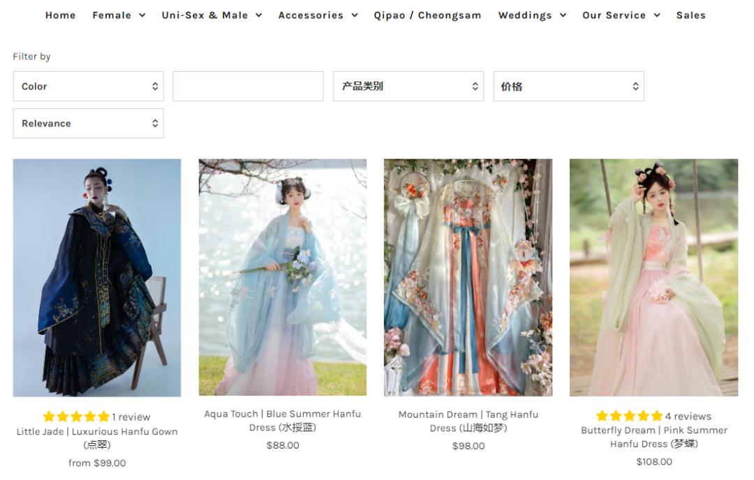 例如近來(lái),在大熱的服飾賽道里,國(guó)產(chǎn)品牌NewMoonDance抓住了漢服這個(gè)小眾商機(jī),憑借款式豐富、質(zhì)量上乘的漢服產(chǎn)品,以及量身定制的貼心服務(wù),在海外迅速出圈。曾有數(shù)據(jù)統(tǒng)計(jì),NewMoonDance的獨(dú)立站一小時(shí)就能賣出500單,營(yíng)收超6萬(wàn)美元。